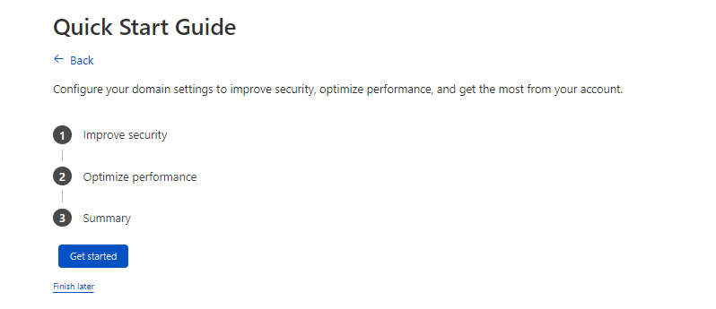 Karşınıza çıkan panelden Quick Start Guide adımlarının hepsini Get started butonuna basarak isteğimize göre düzenleyip Finish butonuna basıyoruz.