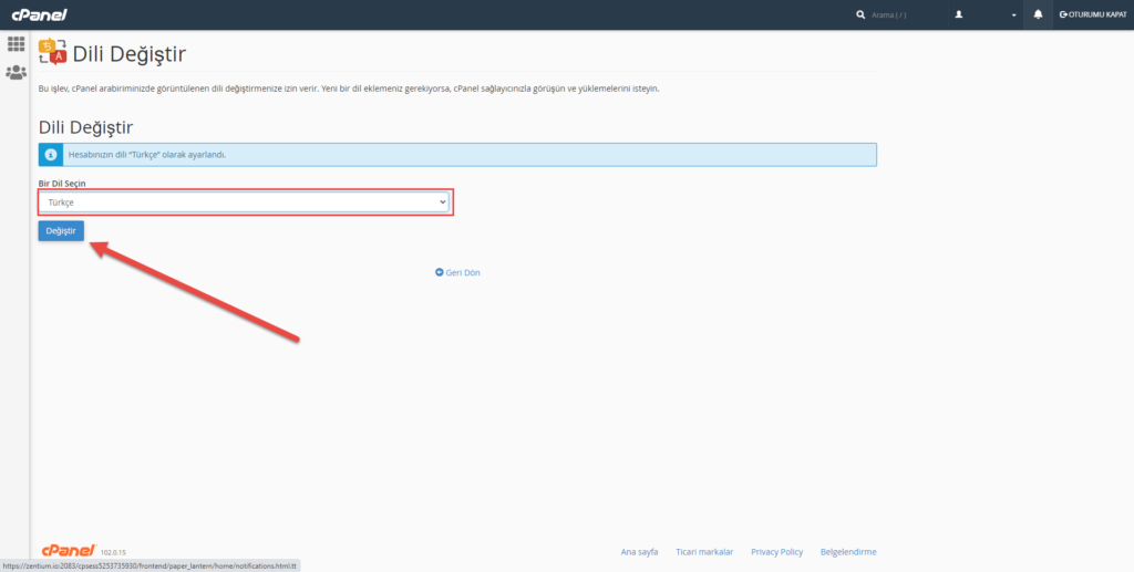 Tebrikler! cPanel Dil Değiştirme işlemini başarıyla tamamladık.