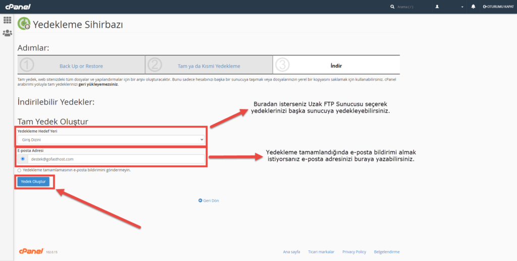 Tebrikler! Artık sitenizi tam yedekleme yaparak güvenceye aldınız.