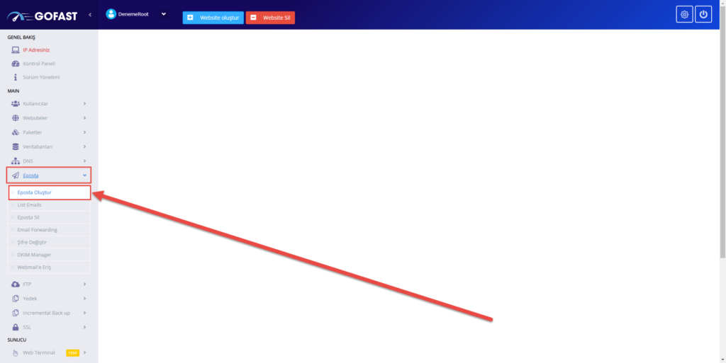 Ardından Sol Menü’de bulunan E-Posta menüsünden E-Posta Oluştur kısmına tıklıyoruz.