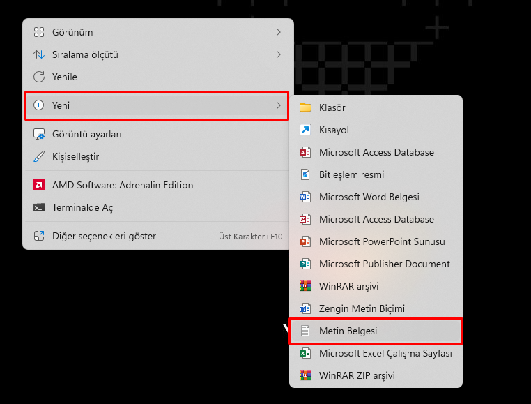 Öncelike hemen bir TXT dosyası oluşturuyoruz.