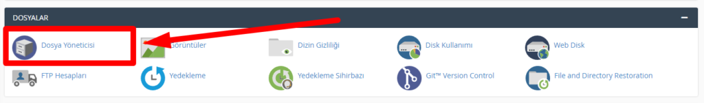 Ardından cPanel’imizde bulunan Dosya Yöneticisi’ne tıklıyoruz.