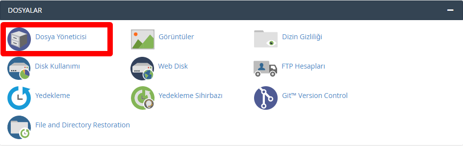 Öncelikle WordPress sitenizin cPanel’ine giriyoruz ve Dosya Yöneticisi‘ne giriş yapmak için üzerine tıklıyoruz.