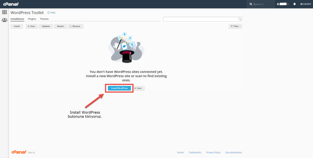 Öncelikle cPanel’imize giriş yapıyoruz ve WordPress Toolkit ikonuna tıklıyoruz ve açılıyor.